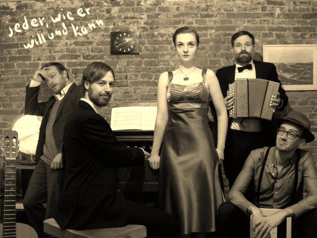 „Das Fräulein Wett und jeder, wie er will und kann“ ist der Name einer sympathischen kleinen Popsensation aus Hamburg! Ausgerüstet mit Akkordeon, Klampfe, Bass-Ukulele und Schlachwerch treiben die fünf Musikanten ihren Schabernack, feiern die einschlägigsten Schlager der Goldenen…