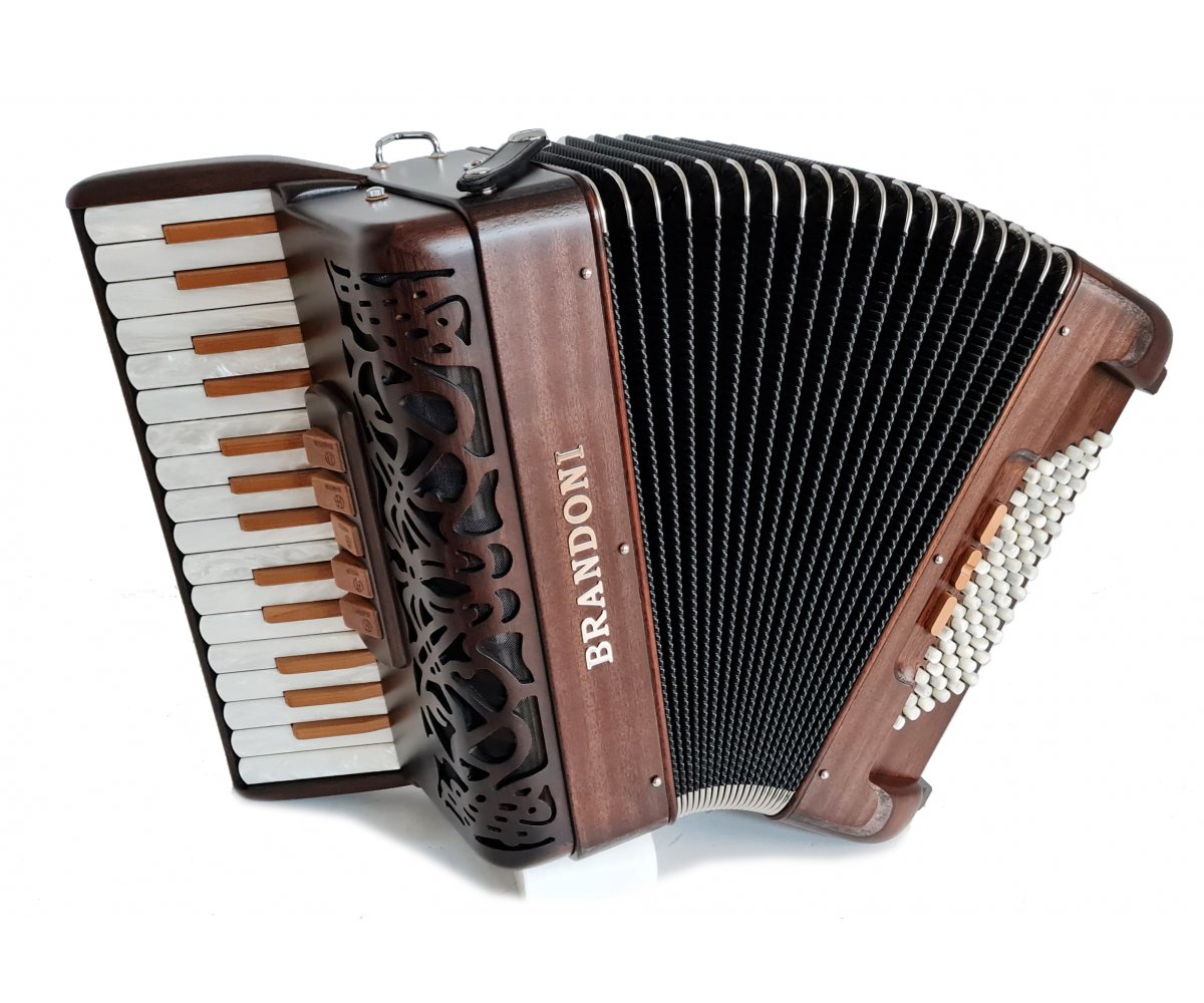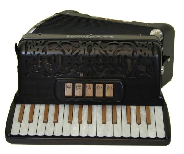 Klein und handlich in höchster Qualität. Das Mahagoni Massivholzgehäuse und die kunstvolle Fräsung im Diskantverdeck verwöhnen das Auge. Die hochwertigen, pervekt justierten Mechaniken und die A-Mano Stimmplatten verwöhnen das Ohr und den Spieler.