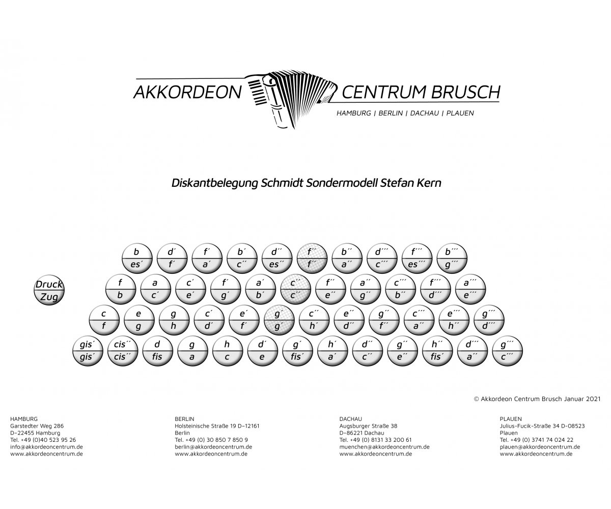 | Diskanttasten | 46 Inkl. 2 Halbtöne (gleichtönig) |