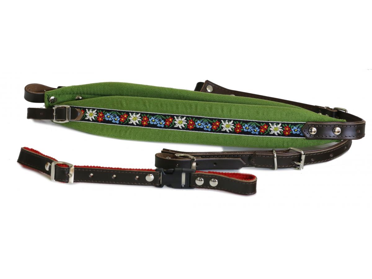 Akkordeon Riemen 92.Harmonika Riemen Edelweis Stoff/Leder grün + Rückenverbinder