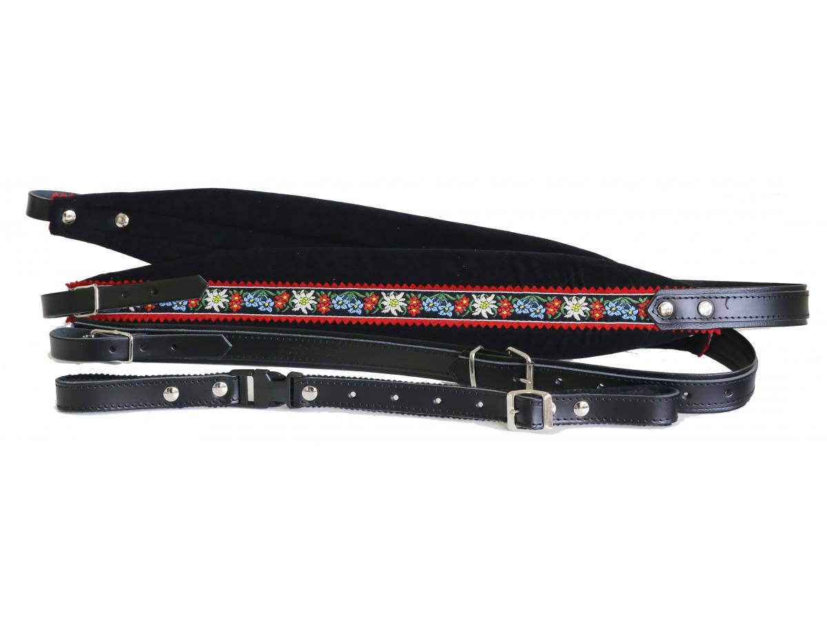 Akkordeon Riemen 90.Harmonika Riemen Edelweis Stoff/Leder schwarz + Rückenverbinder